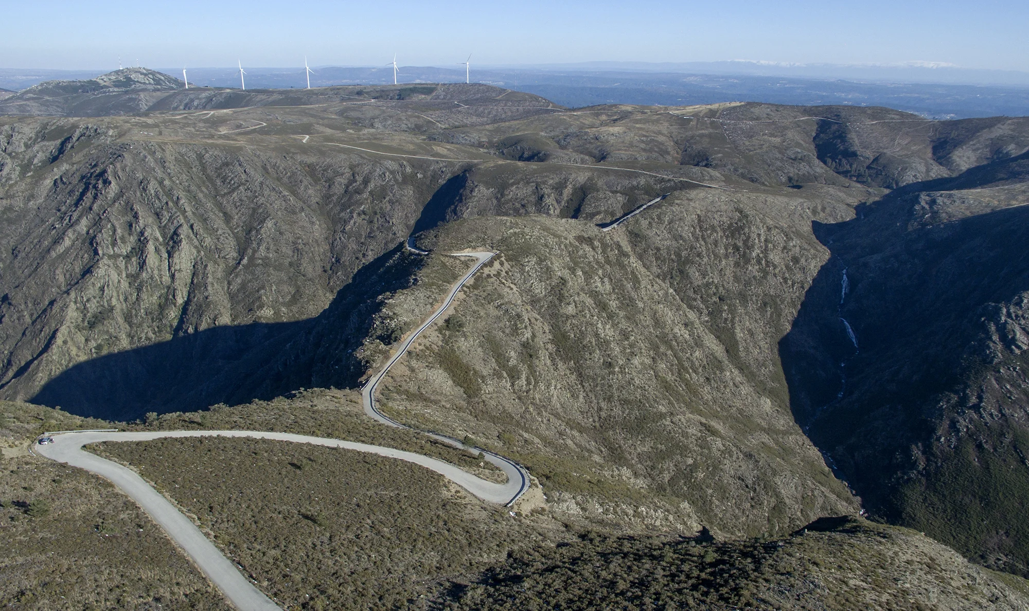 Shaped over millennia by the streams of Covas do Monte (east) and Palhais (west), the terrain here is wild and imposing. To the west, the striking formation known as “The Claw” (Garra) resembles a massive bird of prey’s talon carved into the mountainside. In spring, this scene becomes even more vivid as yellow carqueja and pink heather bloom, painting the landscape with vibrant color.